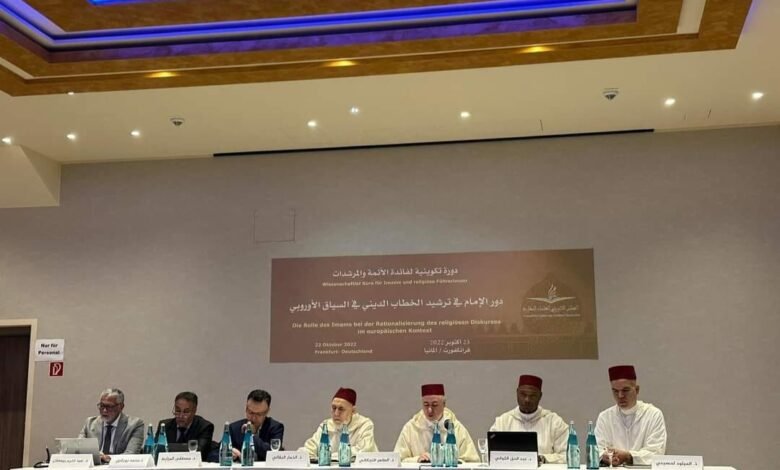 إنطلقت أشغال الدورة التكوينية التي نظمها المجلس الأوروبي للعلماء المغاربة لفائدة الأئمة والمرشدات بمدينة فرانكفورت بألمانيا يوم 23 أكتوبر 2022 تحت عنوان” دور الإمام في ترشيد الخطاب الديني في السياق الأوربي”.