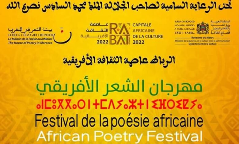 في إطار الاحتفال بالرباط عاصمة للثقافة الأفريقية، تنظّم وزارة الشباب والثقافة والتواصل وبيت الشعر في المغرب مهرجان الشعر الأفريقي وذلك أيام 5 و6 و7 ماي 2023 بعدد من الفضاءات الثقافية والفنية لمدينة الرباط.