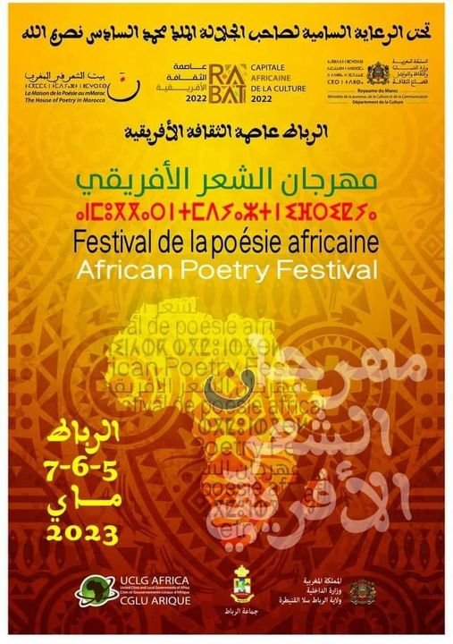 في إطار الاحتفال بالرباط عاصمة للثقافة الأفريقية، تنظّم وزارة الشباب والثقافة والتواصل وبيت الشعر في المغرب مهرجان الشعر الأفريقي وذلك أيام 5 و6 و7 ماي 2023 بعدد من الفضاءات الثقافية والفنية لمدينة الرباط.