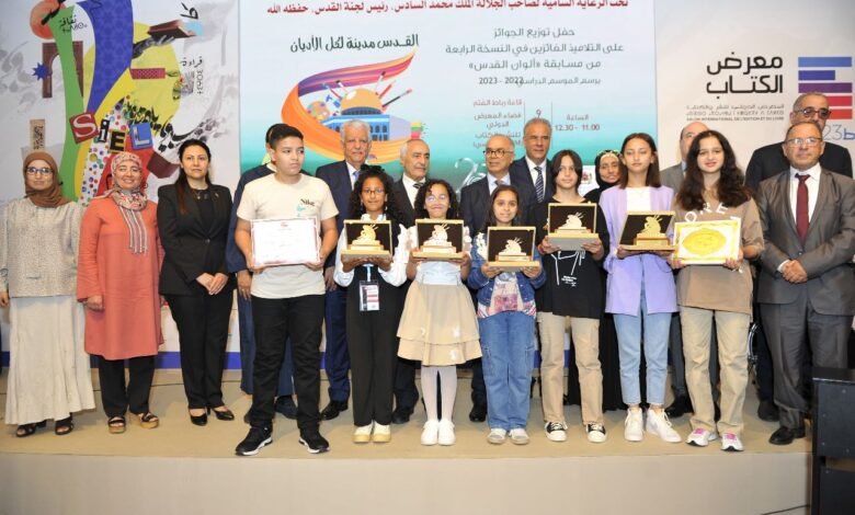 نظمت وكالة بيت مال القدس الشريف، اليوم الجمعة (9 يونيو 2023) في رحاب المعرض الدولي للنشر والكتاب، حفل توزيع الجوائز على الفائزين في الدورة الرابعة من مسابقة “ألوان القدس” للموسم الدراسي 2022 – 2023، وذلك بحضور وزير التربية الوطنية والتعليم الأولي والرياضة بالمملكة المغربية السيد شكيب بنموسى، وسفير دولة فلسطين لدى المغرب السيد جمال الشوبكي، وشخصيات دبلوماسية وثقافية واجتماعية.
