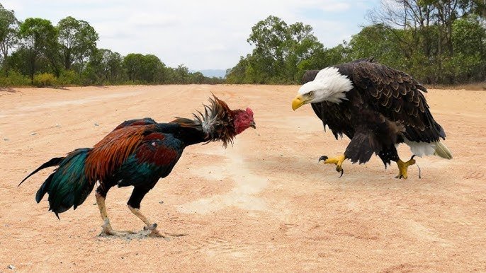 ولم يكد الديك ينتهي من صياحه المتكرر حتى لفت نظر نسر أبيض هائل كان يحلق في المنطقة يبحث عن طعام لفراخه الجائعين، فانقض عليه في لحظة وأمسك به بمخالب لا تفلت، فأصبح الديك المغرور عشاء لفراخ النسر تلك الليلة.