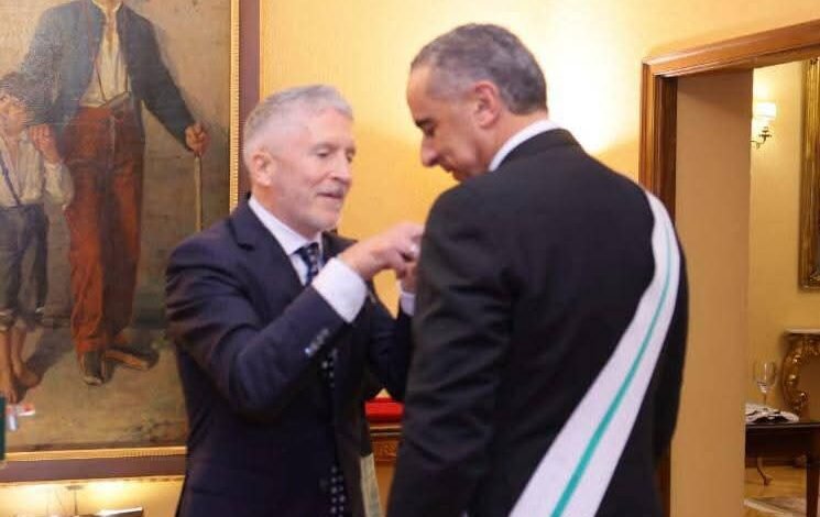أشرف وزير الداخلية الإسباني فرناندو غراندي مارلاسكا، اليوم الثلاثاء، بالعاصمة الإسبانية مدريد، على الحفل الرسمي لتوشيح المدير العام للأمن الوطني ولمراقبة التراب الوطني السيد عبد اللطيف حموشي بوسام الصليب الأكبر للاستحقاق للحرس المدني، الذي يعد أرفع وأسمى وسام تمنحه هذه المؤسسة الأمنية للشخصيات الأجنبية.