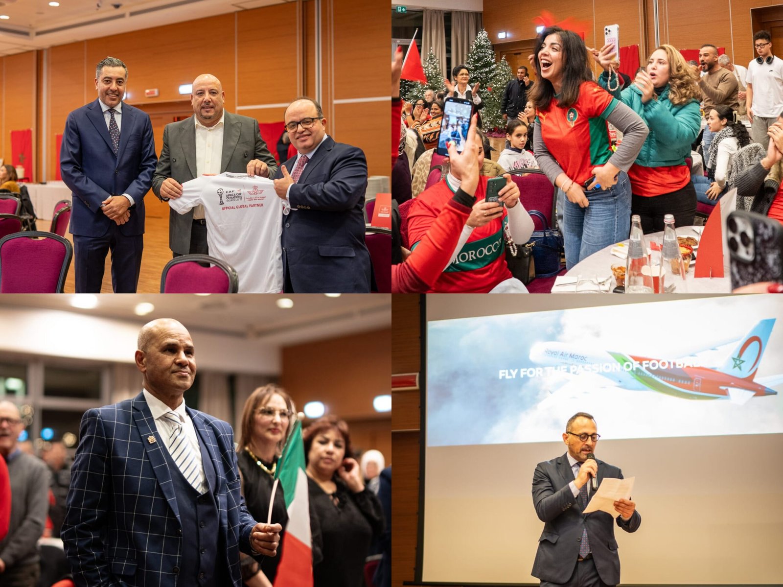 من جهته، رحّب مدير شركة الخطوط الملكية المغربية بإيطاليا بالحضور، وهنّأ المغرب ملكاً وشعباً بهذا الفوز، مؤكداً أن هذه المبادرة تندرج في إطار رؤية الإدارة العامة للشركة لمواكبة الأحداث الوطنية والدولية، بما يجسد تلاحم مغاربة العالم مع العرش، ويعزز روابط التواصل مع الوطن الأم، من خلال دعم ورعاية التظاهرات التي تخدم الجالية المغربية وتقربها من بلدها الأصلي.