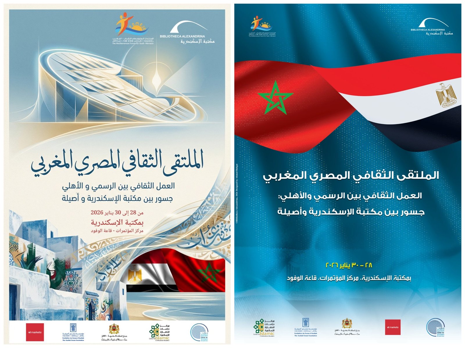 وفي هذا السياق تحتضن مكتبة الإسكندرية، خلال الفترة الممتدة من 28 إلى 30 يناير 2026، فعاليات الملتقى الثقافي المصري المغربي تحت عنوان: “العمل الثقافي بين الرسمي والأهلي: جسور بين مكتبة الإسكندرية وأصيلة” وذلك بشراكة بين مركز الدراسات الاستراتيجية – قطاع البحث الأكاديمي ومركز دراسات الحضارة الإسلامية بمكتبة الإسكندرية والمنتدى المتوسطي للشباب بالمغرب، وبتعاون مع مؤسسة منتدى أصيلة.