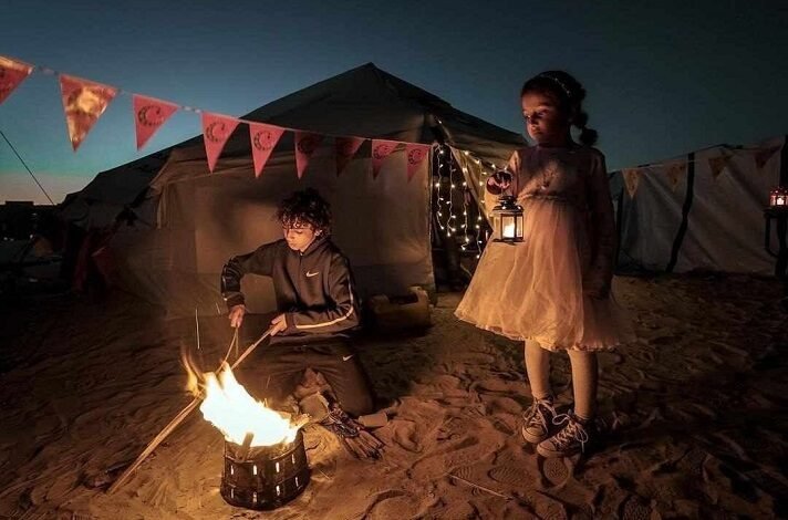 شعلة صغيرة تتشبّث بفتحة الخيمة