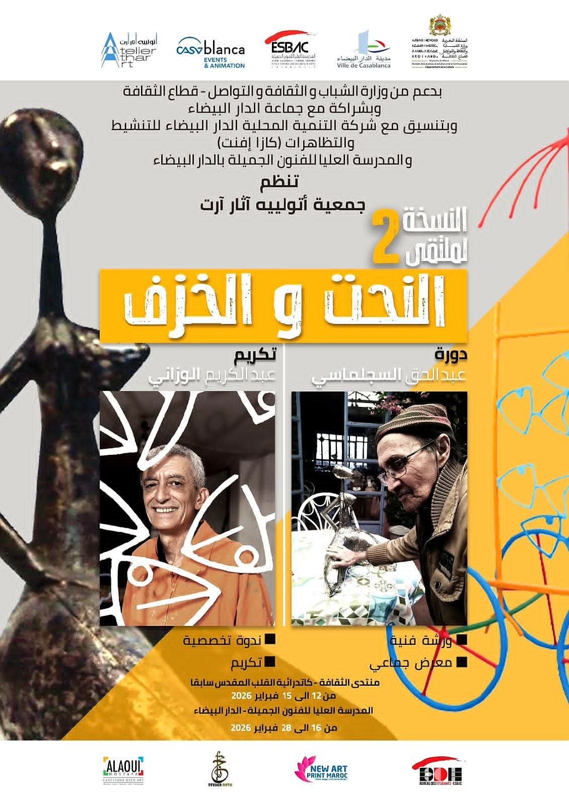 في سياق دينامية فنية متجددة تشهدها العاصمة الاقتصادية، تحتضن مدينة الدار البيضاء خلال الفترة الممتدة من 12 إلى 28 فبراير 2026 النسخة الثانية لملتقى النحت والخزف، الذي تنظمه جمعية أتولييه أثر آرت بدعم من وزارة الشباب والثقافة والتواصل، قطاع الثقافة، وبشراكة مع جماعة الدار البيضاء، وبتنسيق مع المدرسة العليا للفنون الجميلة بالدار البيضاء.