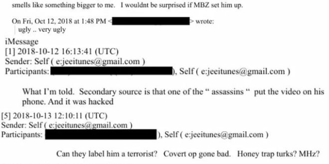 وبحسب ما ورد في مراسلات إلكترونية مؤرخة في أكتوبر 2018، أي بعد أيام من مقتل خاشقجي داخل القنصلية السعودية في إسطنبول، اعتبر إبستين أن القضية «تتجاوز كونها حادثًا معزولًا»، ملمحًا إلى احتمال استدراج ولي العهد السعودي محمد بن سلمان إلى الأزمة عبر ترتيبات إقليمية أوسع.