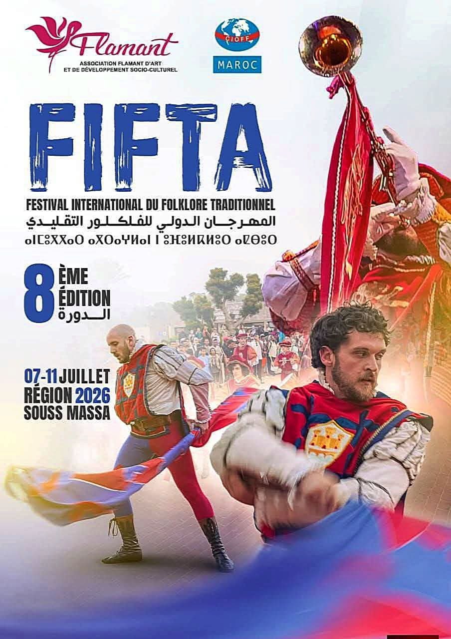 تتهيأ مدينة أكادير لعيش واحدة من أبرز المحطات الثقافية والفنية الدولية، من خلال احتضانها الدورة الثامنة من المهرجان الدولي للفلكلور التقليدي بأكادير (FIFTA)، الذي تنظمه جمعية فلامون للفن والتنمية السوسيوثقافية، بشراكة مع المجلس الدولي لمنظمات مهرجانات الفلكلور والفنون التقليدية (CIOFF المغرب)، وذلك خلال الفترة الممتدة من 07 إلى 11 يوليوز 2026، بجهة سوس ماسة، مهد التراث الأصيل وملتقى الثقافات.