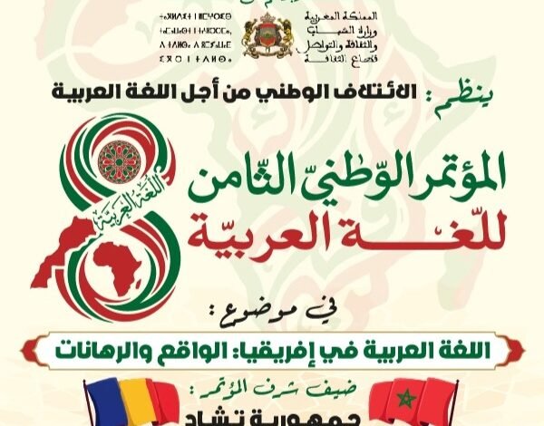 ينظم الائتلاف الوطني من أجل اللغة العربية، المؤتمر الوطني الثامن للغة العربية، في موضوع: “اللغة العربية في إفريقيا: الواقع والرهانات ” يومي الأربعاء والخميس 29 ـ 30 أبريل 2026، بقاعة باحنيني (قرب وزارة الشباب والثقافة والتواصل، قطاع  الثقافة) بالرباط بالمملكة المغربية.