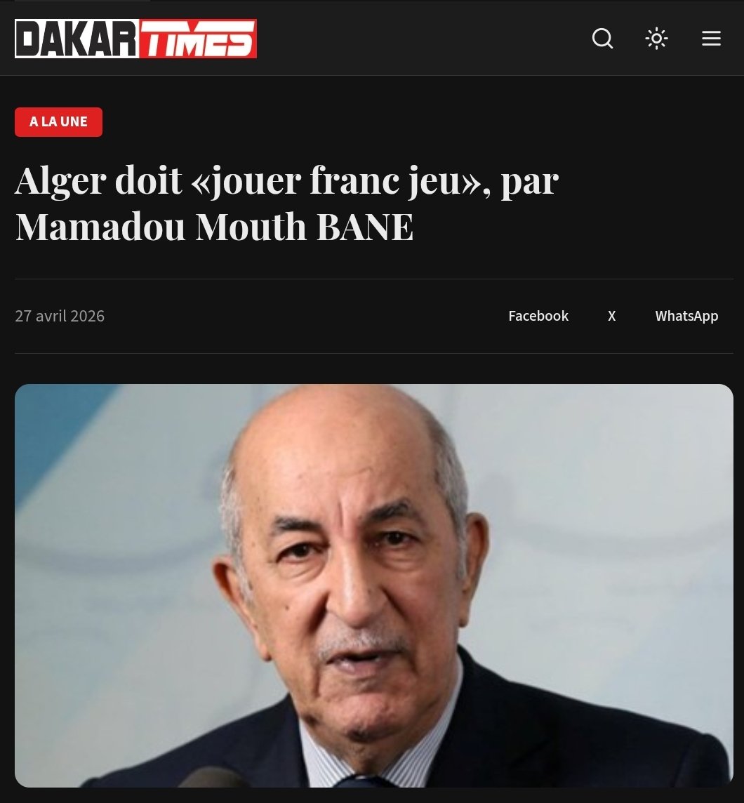 في مقال ناري نشره موقع Dakartimes السنغالي، وُجّهت اتهامات مباشرة للجزائر بشأن دورها في تعقيد الأزمة الأمنية في منطقة الساحل، وسط تحذيرات من تداعيات كارثية قد تمتد إلى شمال وغرب إفريقيا.